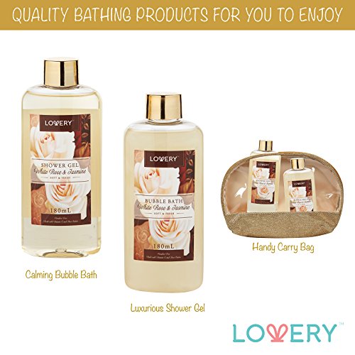 - WHITE ROSE & JASMINE FRAGRANCE ❤ The calming scent of White Rose & Jasmine will gently ease you into a state of peace and well-being. Feel your troubles fade as you soak, scrub and slather your way to silky-smooth skin. This elegant fragrance is infused with warm, floral notes and perfectly balanced, for a treat to your senses that'll last all day.