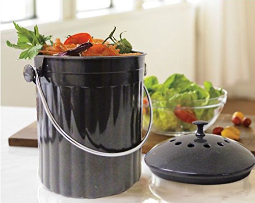 Natural Home Molded Bamboo Charcoal Compost Bin, 1 gallon, Charcoal