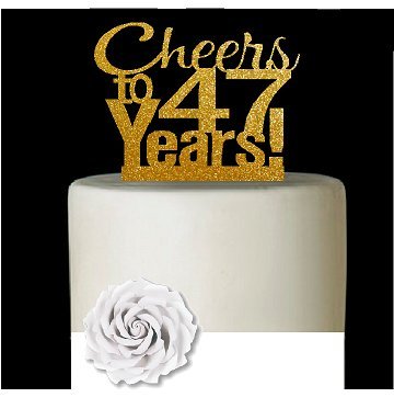CakeSupplyShop Item#047CTA - 47th Birthday / Anniversary Cheers Super Gold Glitter Sparkle Elegant Cake Decoration Topper