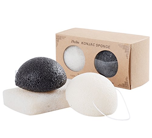 iNeibo 100% Natural Konjac Facial & Body Bath Shower Sponge (3 Pack) Makeup Sponges,Sponges with Bamboo Charcoal, Hypoallergenic, Deep Cleansing...