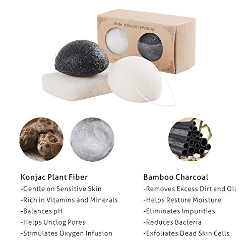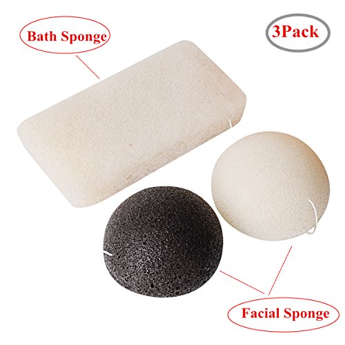 VARIETY PACK - Pack of 3 to cover all your specific skin issues or concerns *Charcoal* - for oily/acne prone skin. *Natural Konjac* - for combination skin&sensitive, tired skin. Two Round for Facial Sponges, One Large for Body Bath Shower Sponge