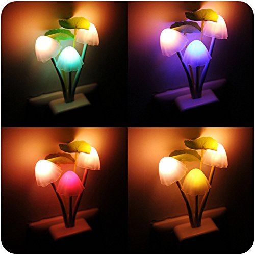 Warmstor Cute Mushroom Lotus Leaves Colors Changing LED Night Light With Dusk to Dawn Sensor Control Wall Light for Kids Baby Sleeping