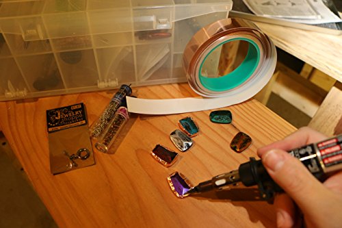 Dual sided conductive copper tape that is ideal for soldering, EMI shielding in electric guitars, DIY electric circuit projects and stained glass crafting.