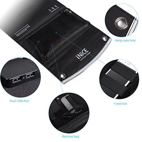 -. Title : iNiCE™ Foldable High Efficiency Solar Panel Charger with Dual USB Ports for iPhone, iPad, Samsung Galaxy, Gopro Camera and More
