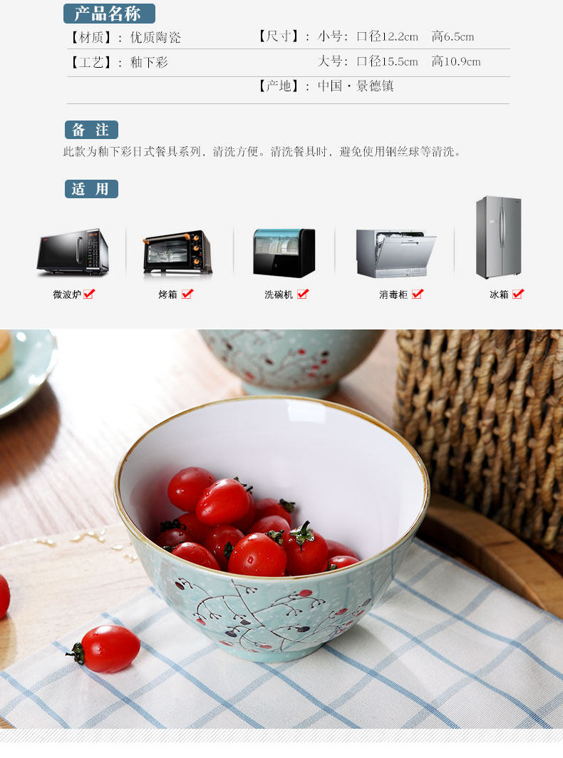 陶瓷米饭碗家用面碗创意日式小汤碗简约学生吃饭碗景德镇餐具套装