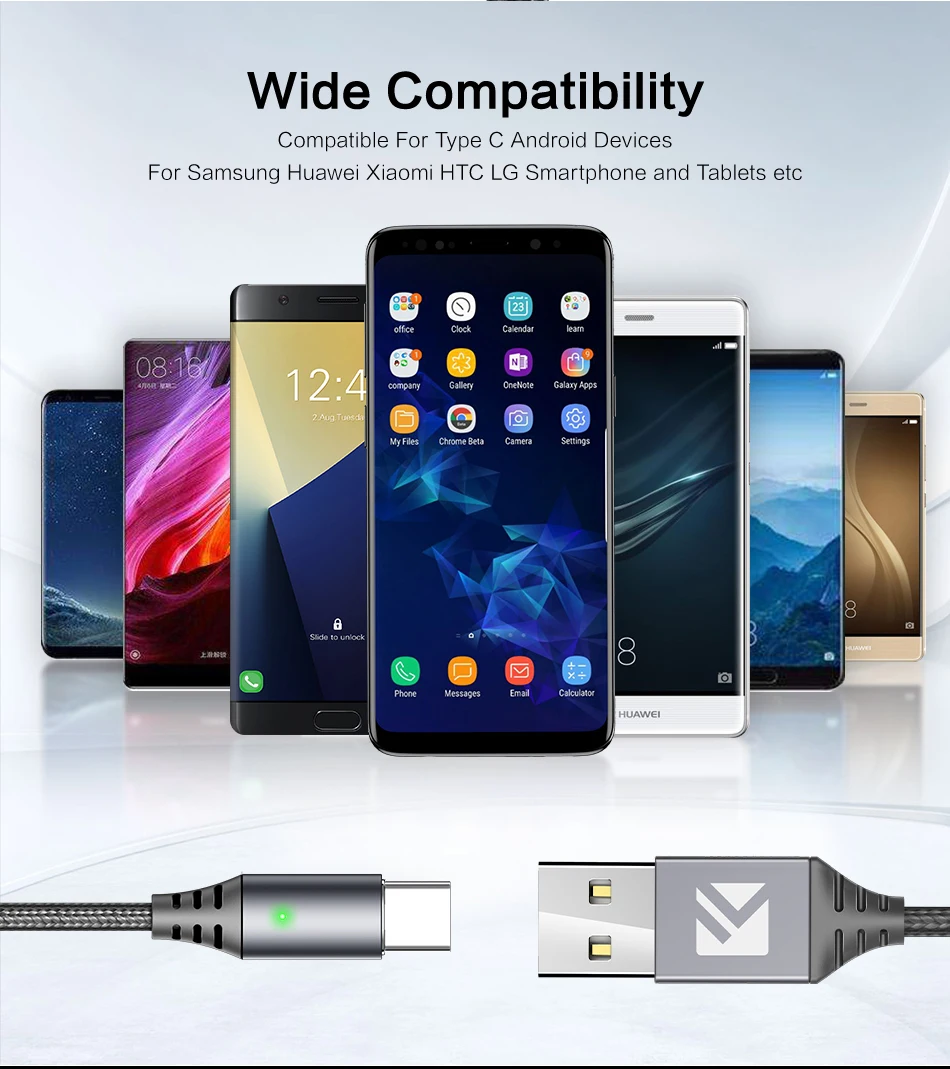 Compatible Model 3:For Huawei P10 Plus Mate 9 Xiaomi 6 Mi 5 Mi 5s Redmi Pro Type C Cable