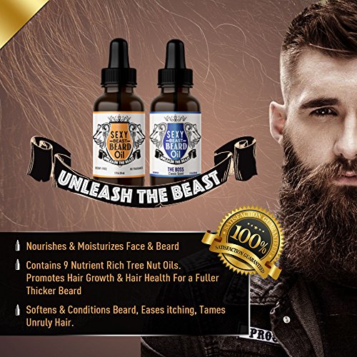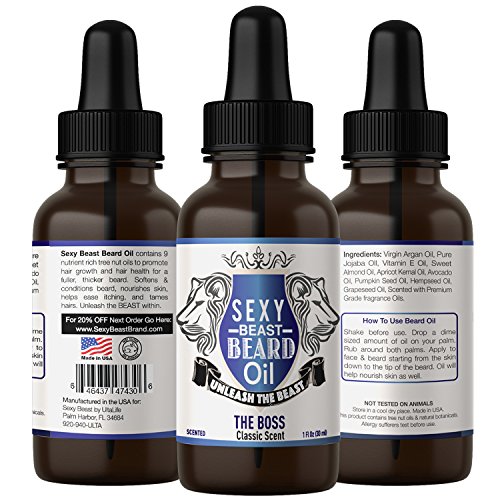 #1 BEST Beard Oil For Men - THE BOSS SCENT - Proprietary 9 Oil Blend Stimulates Facial Hair + Beard & Mustache Growth + Repairs Frizzy Hair +...