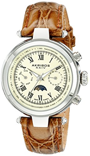 -. Title : Akribos XXIV Men's AK697BR Ultimate Swiss Quartz Multifunction Beige Dial Brown Leather Strap Watch