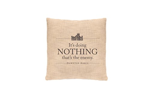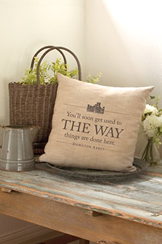 Heritage Lace Downton Abbey Simply Stated The Way 18"x18" Natural Pillow Cover. Our Simply Stated pillow features a favorite Lady Mary quote: "You'll soon get used to the way things are done here." A fun way to add a bit of humor and Downton Abbey style to any room. Pillow is printed in shades of gray on a rich, warm natural ground. The gifts and accessories in this assortment are inspired by our favorite cast and castle. Memorable quotes and iconic images are immortalized in this unforgettable collection. Pillow cover measures 18" x 18" Graphic art transfer. Hidden zipper closure. Mid-weight woven textile. Insert sold separately Printed in the U.S.A. with imported components. Downton and Downton Abbey | 2014 Carnival Film & Television Limited. All Rights Reserved. Pillow Cover: 100-Percent polyester. Machine wash cold, gentle. Do not bleach. Lay flat or hang to dry. Touch up with cool iron if desired. Pillow Insert: 100-Percent polyester. Spot clean only. Made in U.S.A.Feature