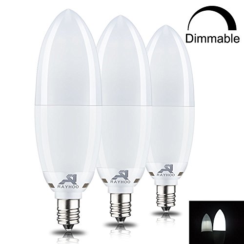 Rayhoo Dimmable E12 Base LED Light Bulbs, Candelabra LED Bulbs 10W, Incandescent 80-100W bulb Equivalent, White 6000K, 3 Pack