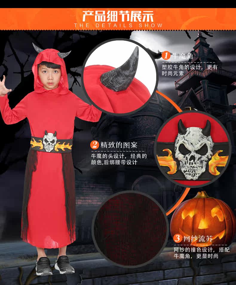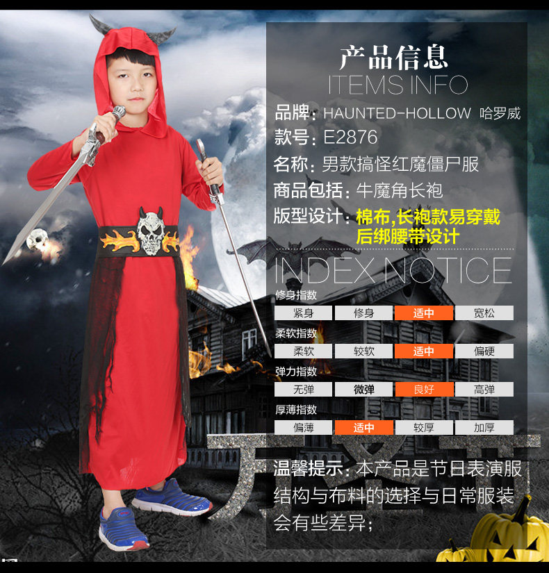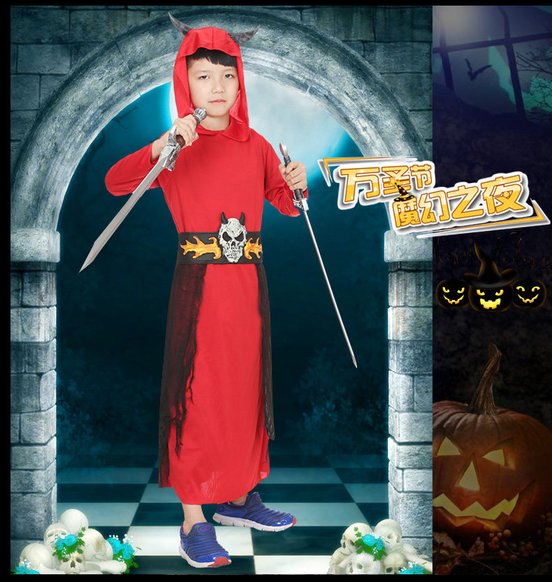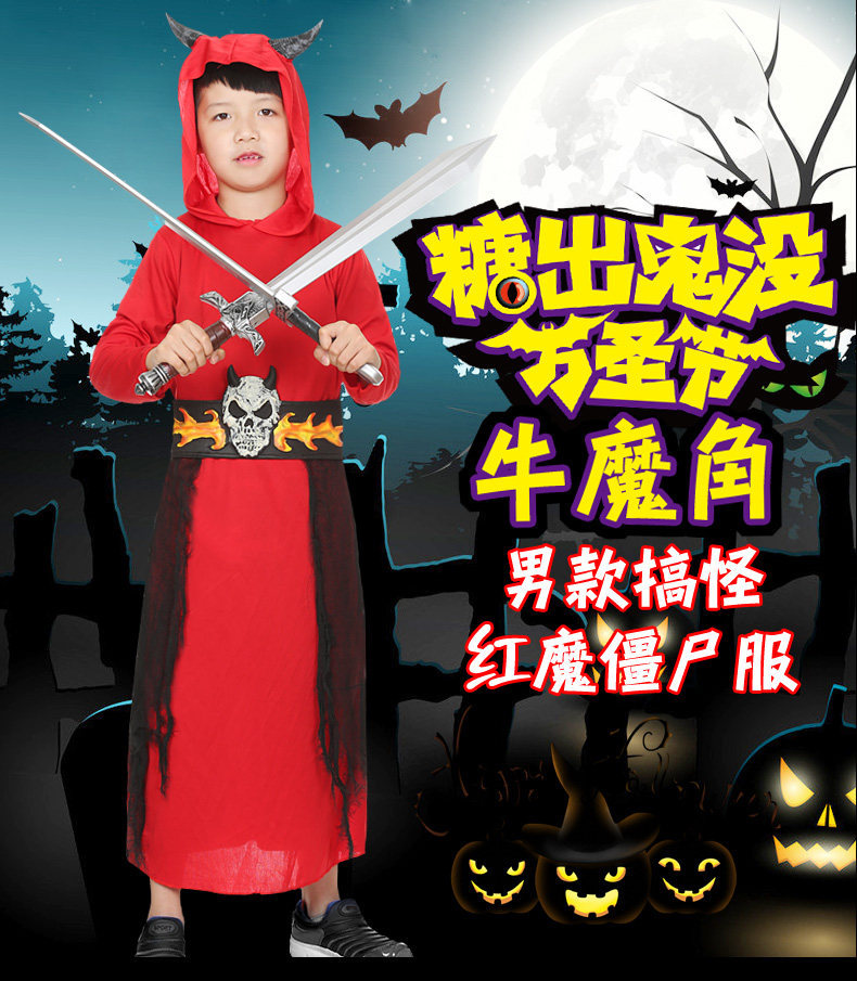 万圣节cosplay服装搞怪创意男儿童红魔僵尸恶魔衣服装E2876