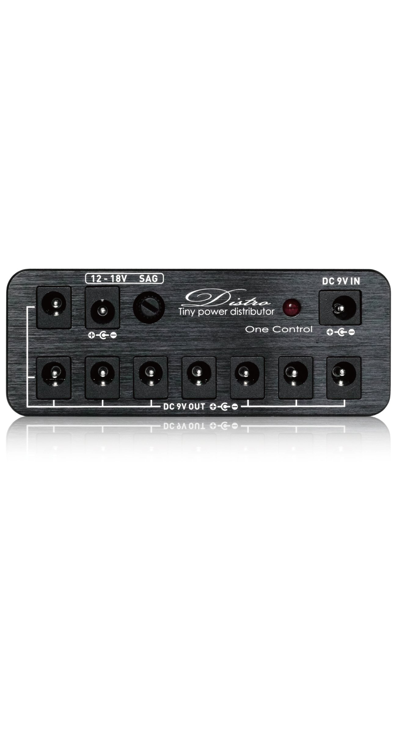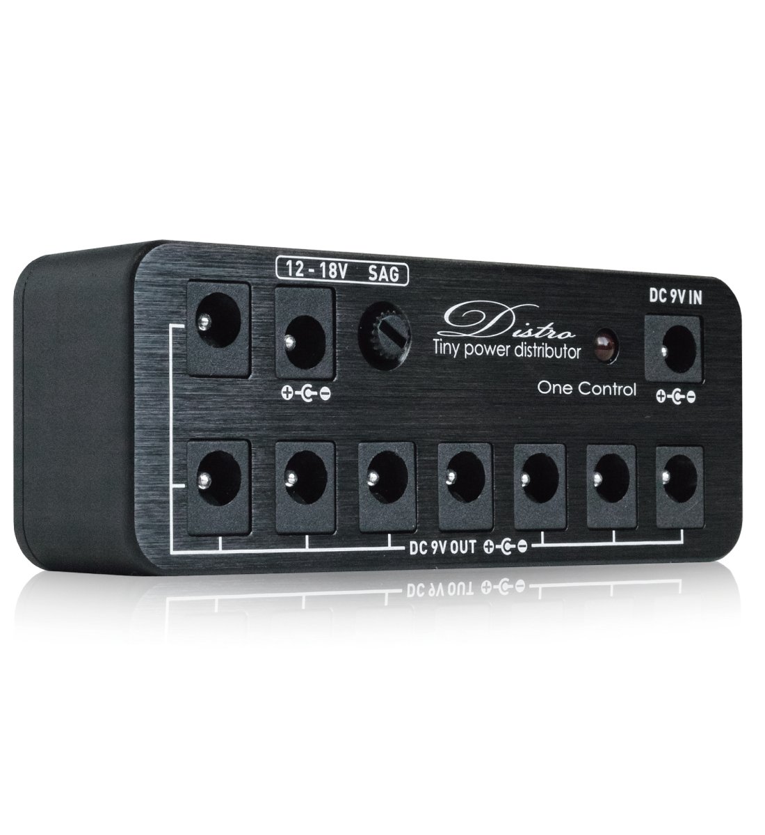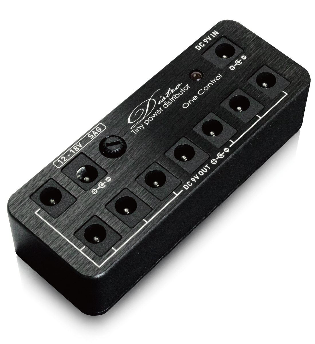 It can be used with a normal 9 V adapter, has 8 9 V DC OUT, and 1 additional 12 - 18 V DC OUT.