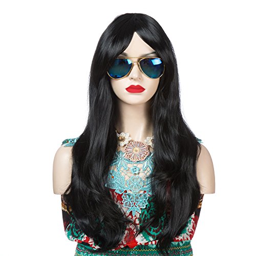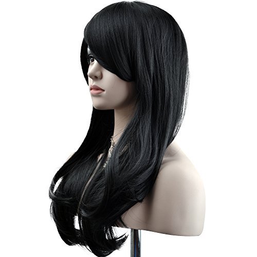 YOPO 28" Wig Long Big Wavy Hair Women Cosplay Party Costume Wig(Black)