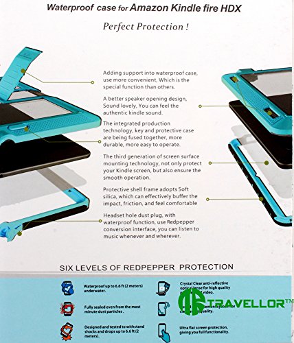 - Feature : Suitable for Amazon Kindle fire hdx 7 / The case is designed with rigid and combined with impact resistant materials while remaining lightweight.Provides shock absorption and impact resistance. / Waterproof Case is waterproof up to 6ft for 30 minutes, with an Ingress Protection rating of IP68. / Shock absorbent materials combine to create a protective shell for your device, and enjoy complete access to all ports and controls,buttons, speakers and the camera.High class silicone+PC+ABS. Absorbs shock and reduces vibration for stability. / Military standard tested and passed for waterproof, shockproof and dustproof, the case is a rugged styling designed to withstand a variety of conditions. Protects against sand, dust, wind, rain, vibration, drop and other elements.