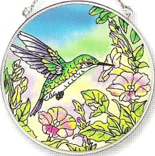 Amia 5845 Hummingbird Design Hand-Painted Glass Suncatcher with Chain, 4-1/2-Inch Circle