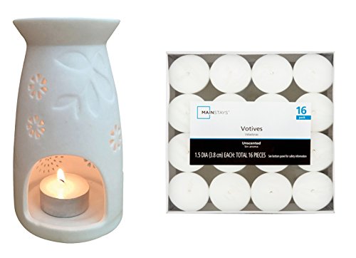 Essential Oil Tealight Burner/Oil Warmer Tealight Bundle with 1 Ceramic Diffuser and a Pack of 16 Unscented Tealight Candles; Candle Warmer Works Great as Tealight Warmer of Aroma Oils