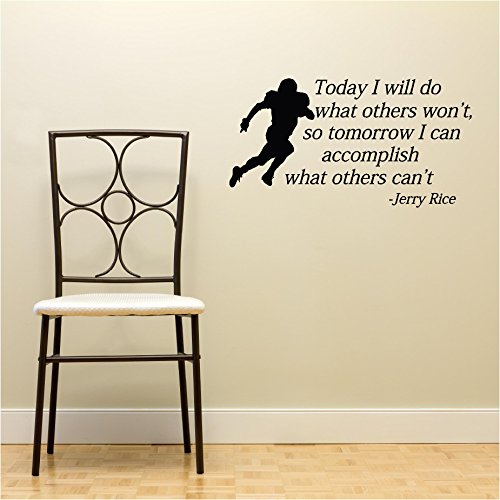 -. Brand : Epic Designs -. Color : Black -. EAN : 0683258815741 -. Feature : Measures 23"x12" / Vinyl color matte BLACK / Detailed instructions included / Actual size may vary from picture. Please see size above. / Design Copyright Epic Designs, Unauthorized replicas will be reported to Amazon Copyright -. Label : Epic Designs -. Manufacturer : Epic Designs -. PackageQuantity : 1 -. ProductGroup : Home Improvement -. ProductTypeName : BUILDING_MATERIAL -. Publisher : Epic Designs -. Studio : Epic Designs -. Title : Today I will do what others won't so tomorrow I can accomplish what others can't Football nursery vinyl wall quotes art sayings stickers decals -. UPC : 683258815741