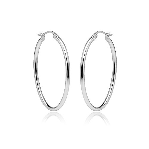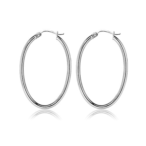 Sterling Silver 2mm Oval Hoop Earrings, 15mm, 20mm, 25mm, 30mm