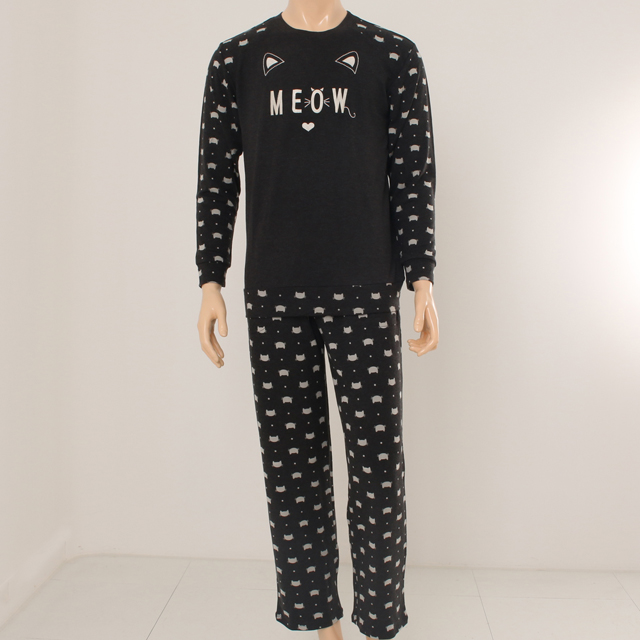고양이 캐릭터로 포인트된 심플하면서도 귀여운 남성실내복입니다.