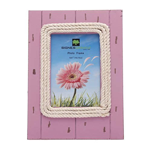 -. Title : 4x6 Inches Wood Picture Frame with Cotton Rope Decoration,with Glass Front