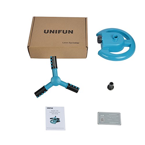 -. Binding : Lawn & Patio -. Brand : UNIFUN -. Color : Blue + Black -. EAN : 6955574648629 -. Feature : Premium quality - three arm + ABS plastic rotary lawn sP.R.Inkler / Effective water sP.R.Inkler irrigation system - patented design of water-saving device can be targeted to save water most by adjusting the water density, size and scope / Easy use - connect water joint to the connector and tap / Long spray distance - Up to 26ft-32.8ft distance with international standard pipes / Different spray directions - direct or 45 degree -. Label : UNIFUN -. Manufacturer : UNIFUN -. Model : GWR012 -. MPN : GWR012 -. PackageQuantity : 1 -. PartNumber : GWR012 -. ProductGroup : Lawn & Patio -. ProductTypeName : ABIS_LAWN_AND_GARDEN -. Publisher : UNIFUN -. Studio : UNIFUN -. Title : Lawn SP.R.Inkler, UNIFUN Garden SP.R.Inklers Water Entire Lawn And Garden Without Oscillating Systems Waste