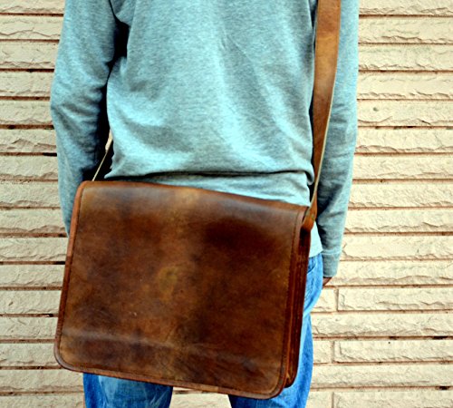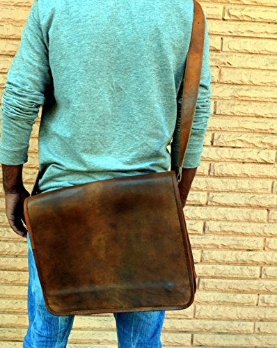 -. Binding : Electronics -. Brand : Indian Hando Art -. Color : Brown -. Feature : Size: 15" x 11" x 4" / Three inner compartments. / Adjustable shoulder strap. / Perfect for college students, iPad, Tablet. / Made from Premium Quality Goat Leather. -. Label : Indian Hando Art -. Manufacturer : Indian Hando Art -. ProductGroup : PC Accessory -. ProductTypeName : COMPUTER_COMPONENT -. Publisher : Indian Hando Art -. Size : Medium -. Studio : Indian Hando Art -. Title : IndianHandoArt Full Flap Leather Bag Leather Messenger Bag School Bag Padded Messenger Bag for Men Crossbody Bags for Women