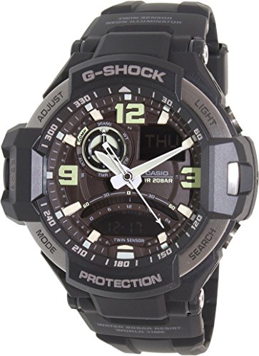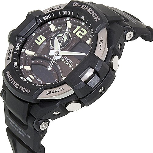 Brand, Seller, or Collection Name:Casio Model number:GA-1000-1BDR (G436) Part Number:GA-1000-1BDR (G436) Model Year:2017 Item Shape:ROUND Dial window material type:Mineral Display Type:ANALOG DIGITAL DISPLAY Clasp:Buckle Case material:Resin Case diameter:50 millimeters Case Thickness:17 millimeters Band Material:Resin Band length:20 millimeters Band width:22 millimeters Band Color:BLACK Dial color:Brown Bezel material:Resin Calendar:Day and date Special features:Casio G-SHOCK SKY COCKPIT Men's Watch GA-1000-1BDR Item weight:18.14 Grams Movement:Quartz Water resistant depth:200 Meters