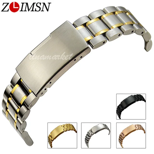ZLIMSN 316L Soild 스테인레스 스틸 시계 스트랩 단일 버튼 배 배포 걸쇠 평면 엔드 실버 시계 팔찌 18 20 22 24 26 미리메터