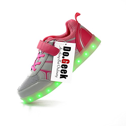 -. Binding : Apparel -. Brand : DoGeek -. Department : unisex-child -. Feature : DoGeek Selected is the ONLY Authorized DoGeek Led Shoes Seller. No Quality Guarantee from other sellers. / DoGeek Light up shoes are the Best Gift of the year for boys and girls. / All past the security test and no Security risks. / 7 different colors in one shoe, making your child the dazzling angel at night. Definitely attention grabber. / Backed by DoGeek 30-day quality warranty.Shipping: About 10-16 days only for the delivery normally. -. ProductGroup : Shoes -. ProductTypeName : SHOES -. Title : DoGeek LED Light Up Shoes Boys Girls Kids Sneakers 7 Color Light (Choose Half Size Up)