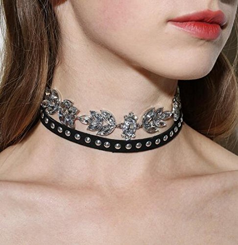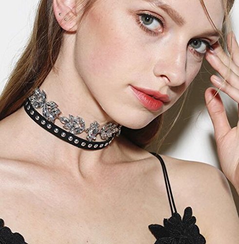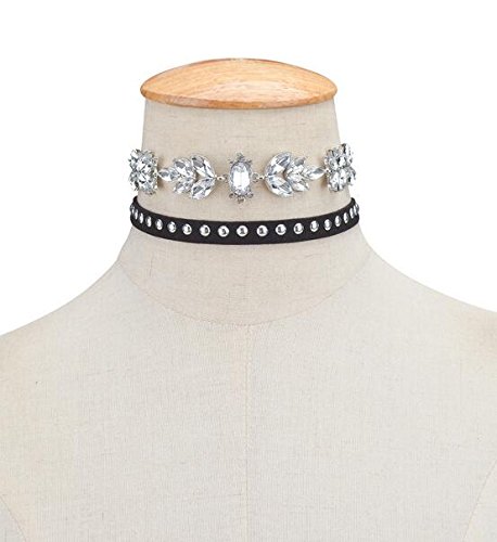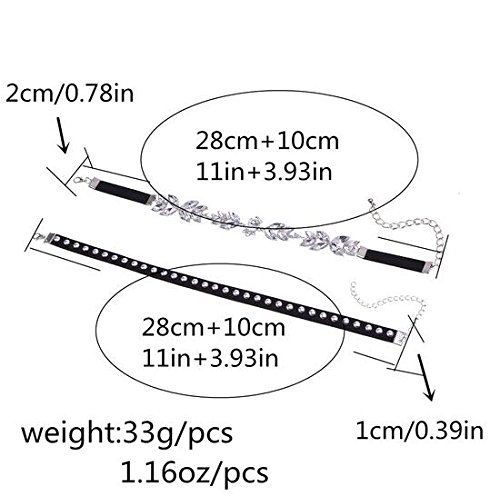 Venusvi Fashion Black Rhinestone Choker Necklace for Girls and Women, (pack by 2)