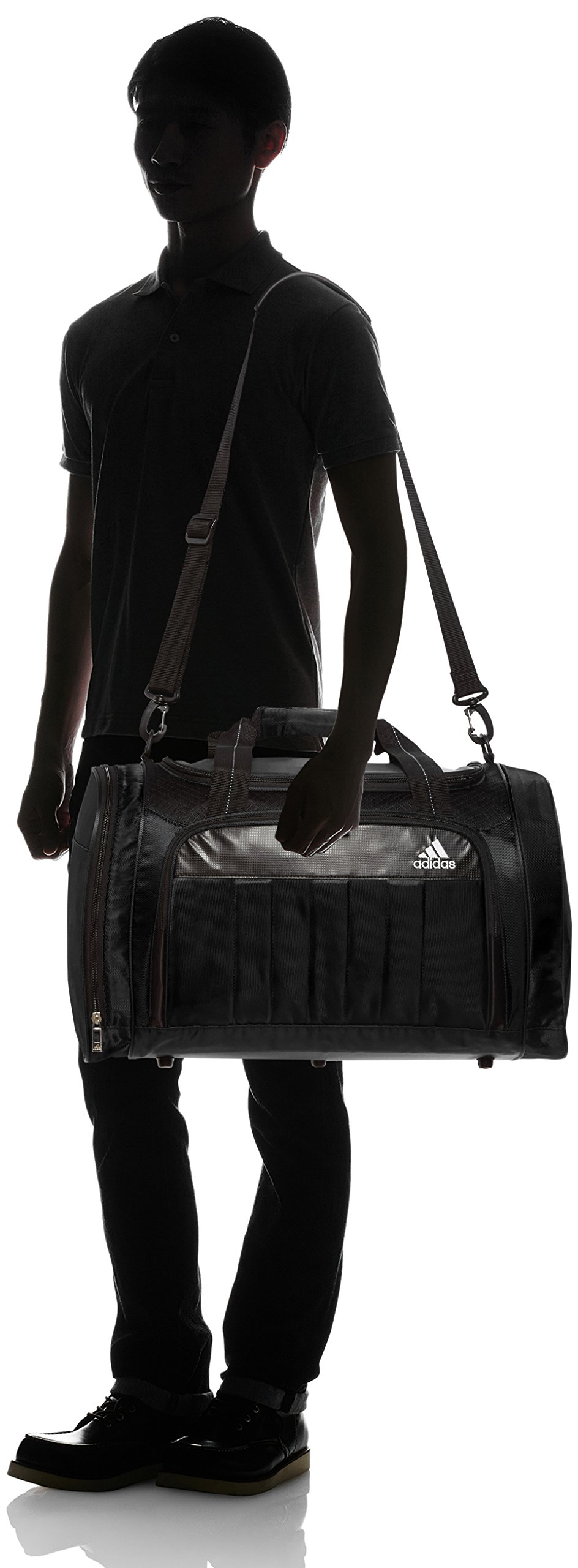 Boston bag which treated three-dimensional 3-stripe on the front.
