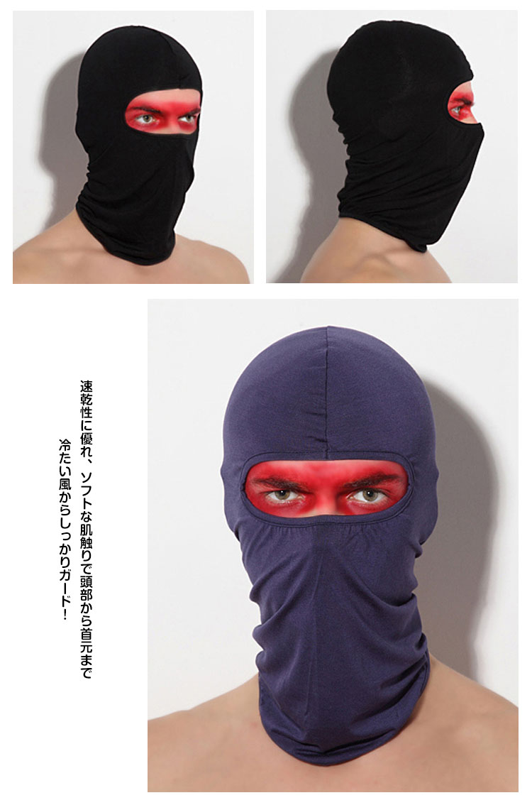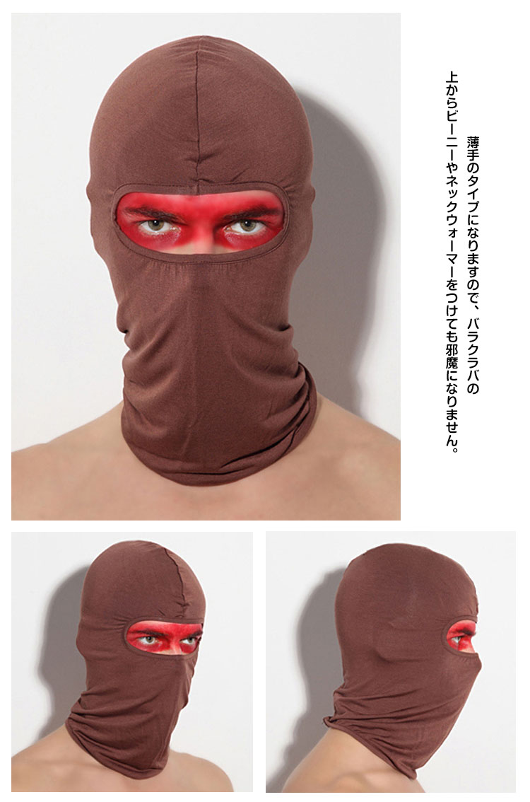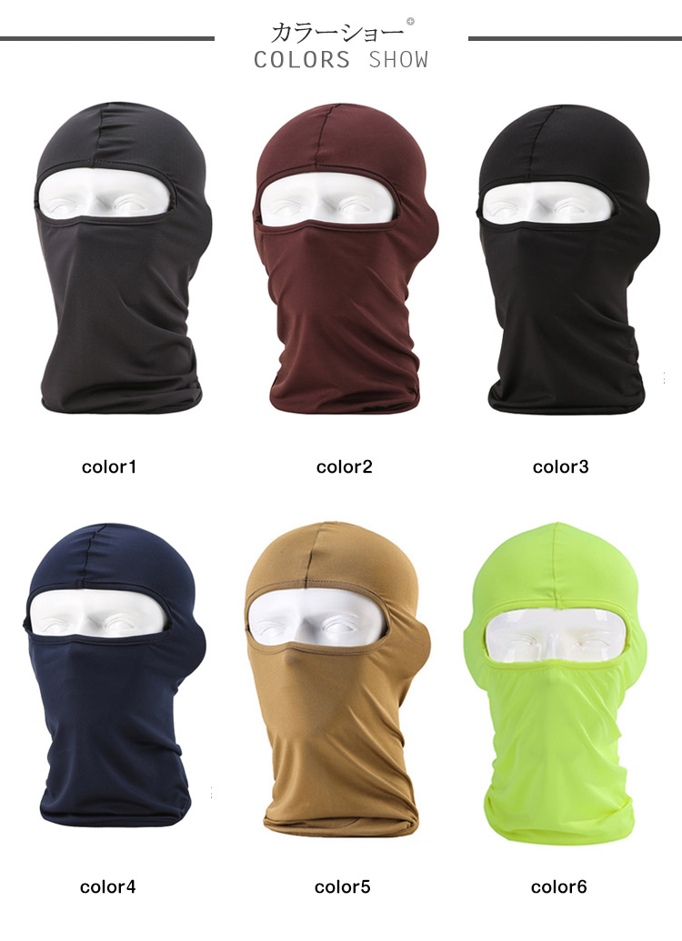 | 顔や首の日焼け防止・紫外線対策グッズ 登山・マリンスポーツで大活躍!速乾性に優れ、ソフトな肌触りで頭部から首元まで冷たい風からしっかりガード!薄手のタイプになりますので、バラクラバの上からビーニーやネックウォーマーをつけても邪魔になりません。ピーカン時の日焼け防止にも最適! | |