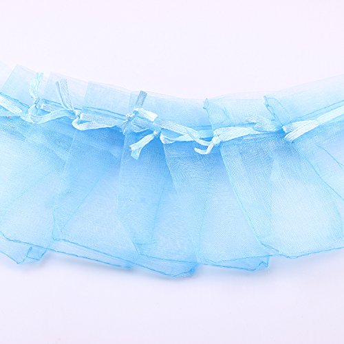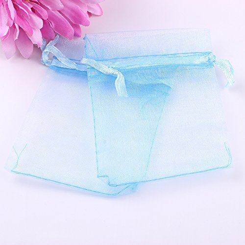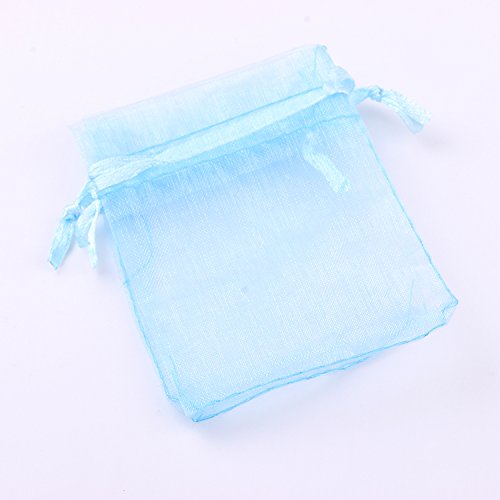 3.54x4.72 Inches Sheer Drawstring Organza Jewelry Pouches Wedding Party Christmas Favor Gift Bags. (Light Blue,50)