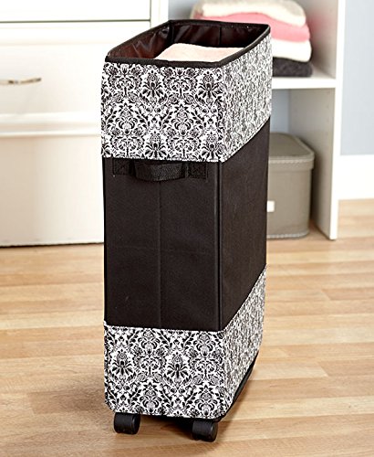 Binding : Kitchen Product Description Space-Saving Rolling Hamper is tall and thin to fit almost anywhere. With handles and wheels, it's easy to move. 15-1/2"W x 7-1/2"D x 25-1/4"H. Polyester, paperboard, MDF and plastic. - Designed to fit into smaller places