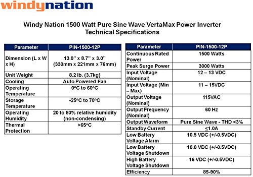Includes VertaMax Pure Sine Wave 1500 Watt (3000 Watt Surge) Inverter with three AC outlets and LED Digital Display