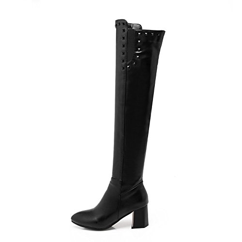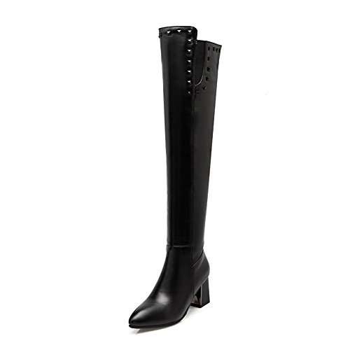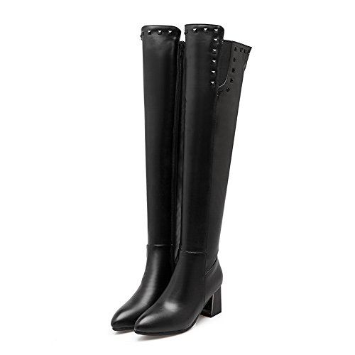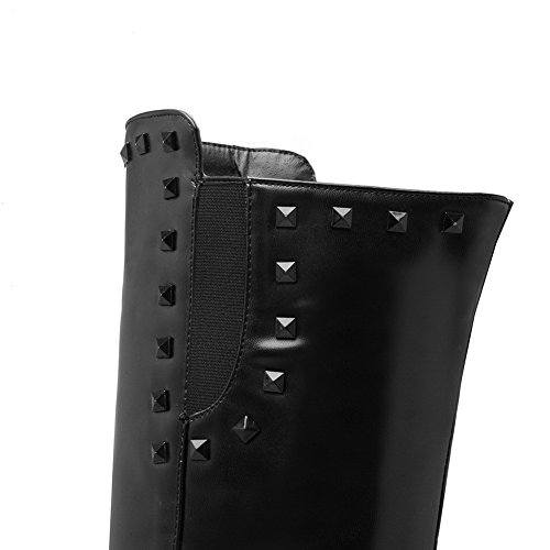 (BalaMasa)/Women's/Boots/DIRECT FROM USA/BalaMasa Womens Penny-Loafer Kitten-Heels Solid Beaded Above-The-Knee Urethane Boots ABL09862