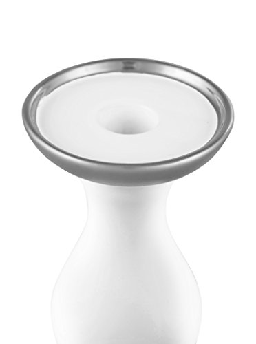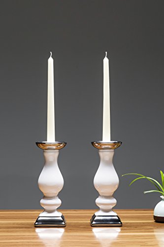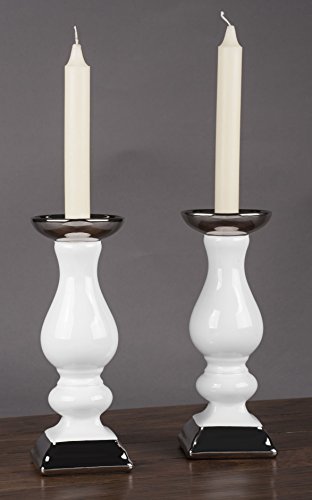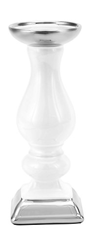 True Grit Fine Electroplated Porcelain Square Base Taper/Pillar Decorative Candlestick Holder White Silver 8 5/8" Height x 3 3/8" Width