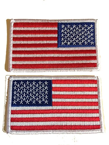 Tactical Iron On Regular and Reverse American Flag Bundle Lot of 2 Pieces Embroidered Patch USA White Borders Uniform Appliqué Emblem
