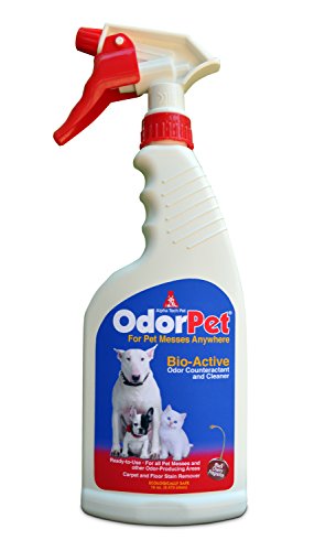 -. Feature : OdorPet Ready-to-Use Formulation is an odor counteractant and cleaner for pet messes anywhere! an outstanding pet odor eliminator, ideal for cleaning up pet messes / OdorPet is totally organic (green), biodegradable and has a near-neutral pH so it can be used on all surfaces as frequently as needed / Its bio-active formulation of stabilized bacterial spores produces enzymes in the presence of organic animal debris. Just spray this ready-to-use formula and leave on surfaces and allow to air dry / OdorPet goes to work to break down the debris immediately and over time reduce it to a solution of CO2 and water to eliminate the source of the odor / Also an effective carpet stain remover, OdorPet can be used in cat litter boxes to control odors, to clean bird cages and small animal housing