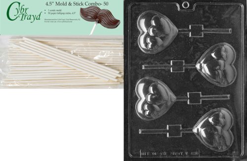 Cybrtrayd 45St50-V138 Hearts on Heart Lolly Valentine Chocolate Candy Mold with 50 4.5-Inch Lollipop Sticks