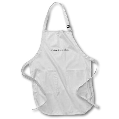 3dRose apr_4365_4 Drinks Well with Others-Full Length Apron with Pockets, 22 by 30-Inch, Black