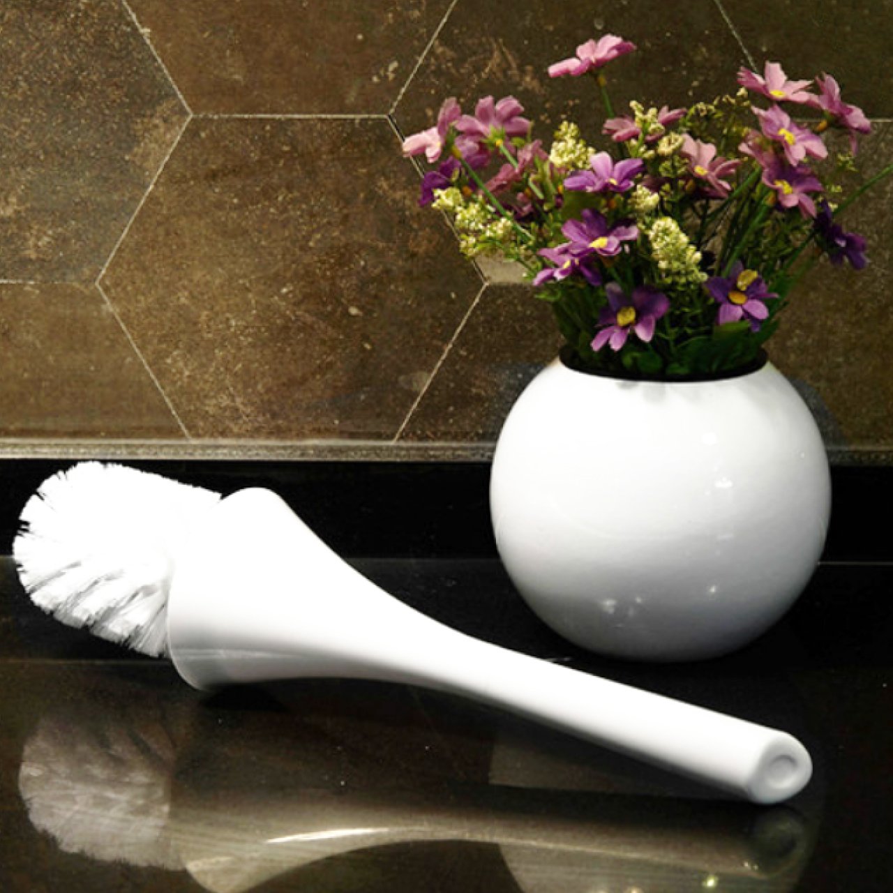 Comfortable handle and water jump prevention brush.