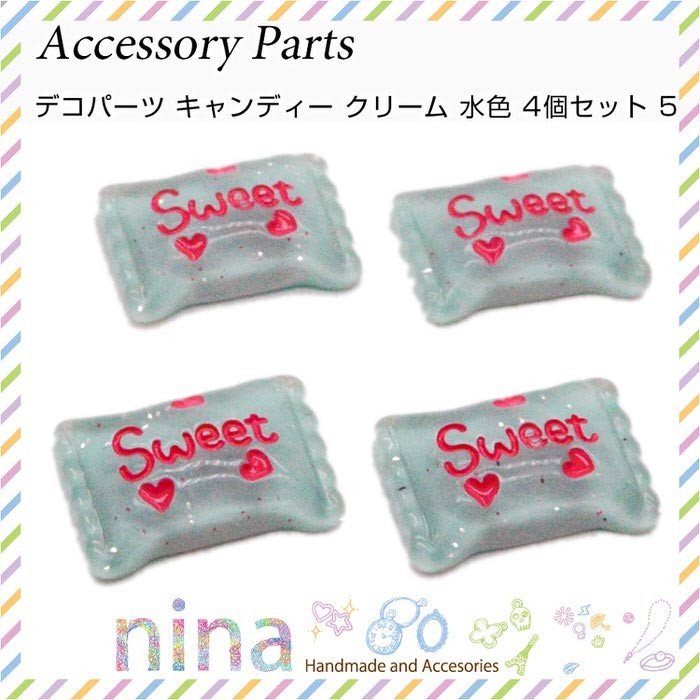■商品名:デコパーツ キャンディー クリーム 水色 4個セット