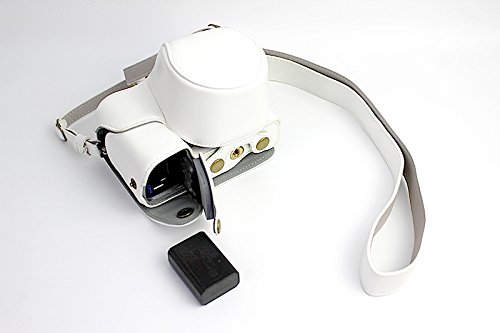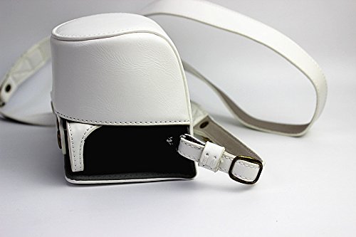 Full Protection Bottom Opening Version Protective PU Leather Camera Case Bag with Tripod Design Compatible For Sony ILCE6300 a6300 with Shoulder Neck Strap Belt White