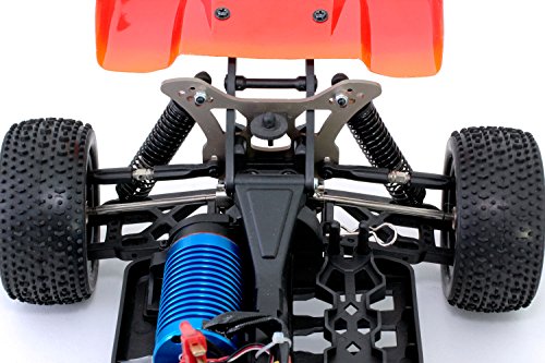 -. Feature : 4 WD Allradantrieb, Einzelradaufhängung mit Öldruckstoßdämpfer / Dämpferbrücken aus Aluminium, 2.4 GHz Fernsteuerung, Einstellbarer Sturz vorne/hinten / Brushless-System mit 7,4 V Lipo-Akku nutzbar / Verstellbare Stoßdämpferpositionen vorne/hinten, Kegeldifferenziale / High Grip Offroad Reifen für alle Untergründe fertig montiert auf Speichenfelgen, Komplett Kugelgelagert