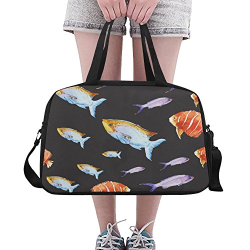 (InterestPrint)/Accessories/Luggage, Bags Travel/DIRECT FROM USA/InterestPrint Travel Duffel Tote Bag with Shoes Compartment for Women Men Fish, Water Color, ...