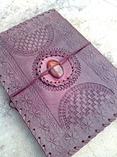-. Title : QualityArt Handmade Journal Leather Notebook Tiger Eye Stone Brown Sketchbook Diary 10 x 7