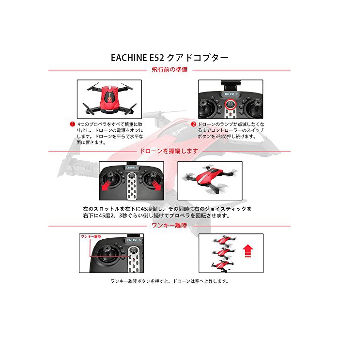 원본상품명: EACHINE E52 ドロン WiFi カメラ付き 空撮 自撮り スマホで操作可 FPVリアルタイム 高度維持 自動ホバリング 2.4GHz 6軸ジャイロ 抗衝突 ヘッドレスモド ポケット 折り