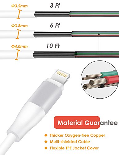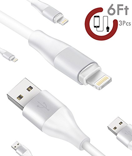 Zeuste [3-Pack Silver 6Ft] Lightning Charging Cable High Speed Data Transfer Sync Charging cord for iPhone, 6S 6 5s 5c IPOD TOUCH 5 NANO 7 IPAD MINI,Compatible with IOS9