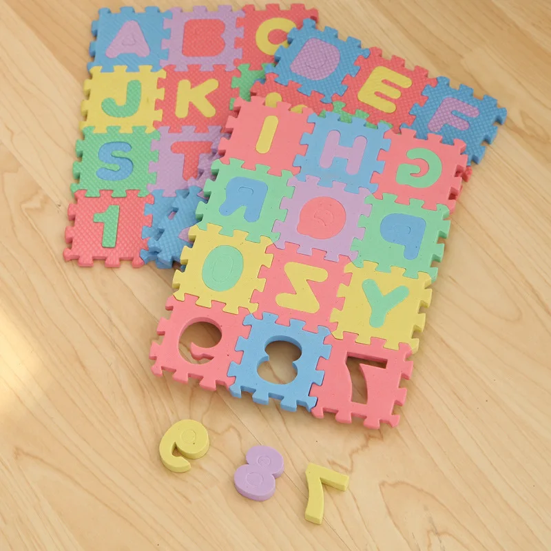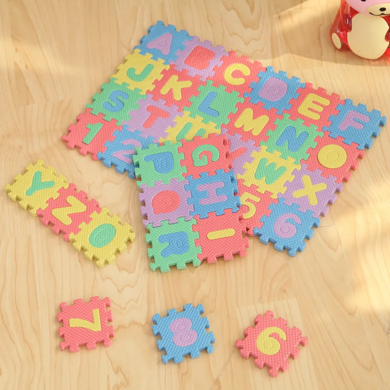 36ピース6センチ* 6センチ* 0.8センチ環境英語アルファベットアラビア数字eva発泡パズル遊びパズル赤ちゃんのおもちゃ子供のため